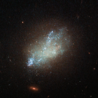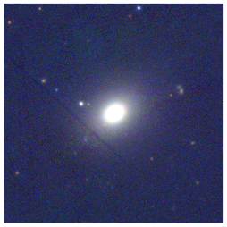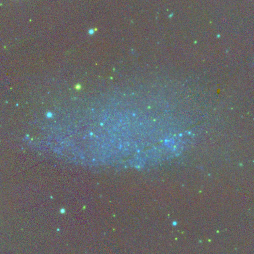 잠깐! 이것도 타원은하! 빛의 분포가 매끄럽게 변하고 타원형인 것으로 보아 이 은하 역시 타원은하입니다. 그런데 일반적인 타원은하와는 모습이 꽤 다르죠? 일반 타원은하보다 더 작고 희미한 이런 은하를 ‘왜소타원은하’라고 한답니다.