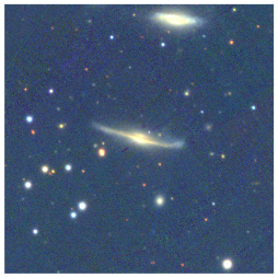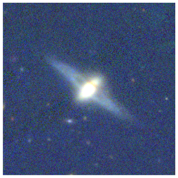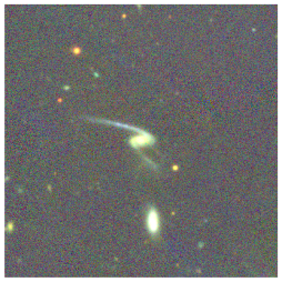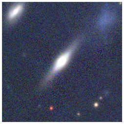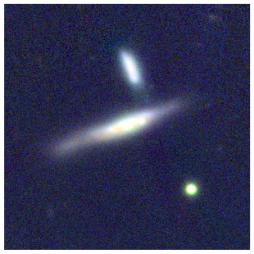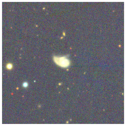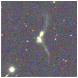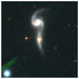 (특별한 은하 색깔(예,녹색), 은하를 에워싼 아크, 은하 중심에 여러 밝은 점, 매우 빛나는 은하 중심핵, 은하 측면의 먼지선 등)